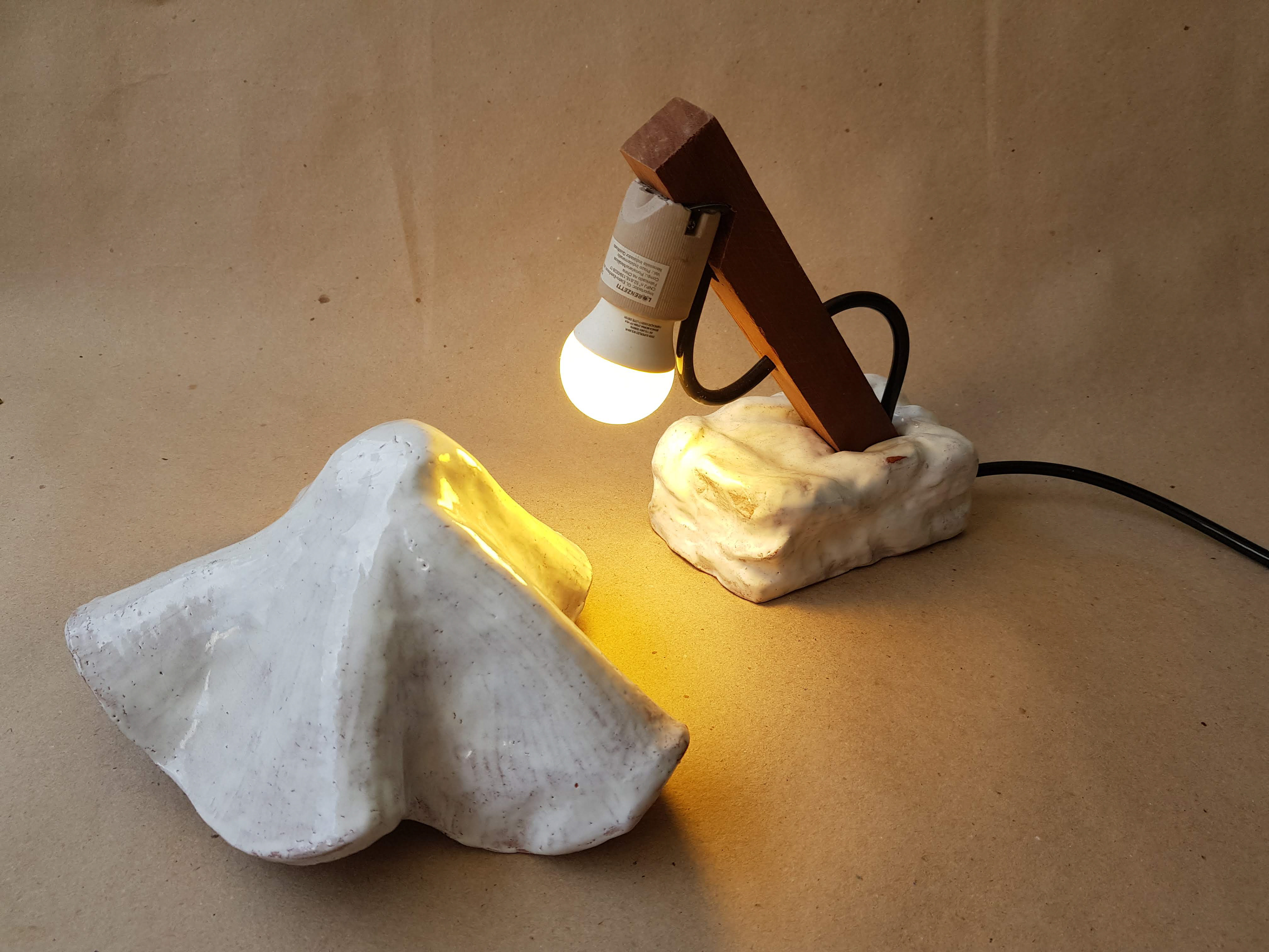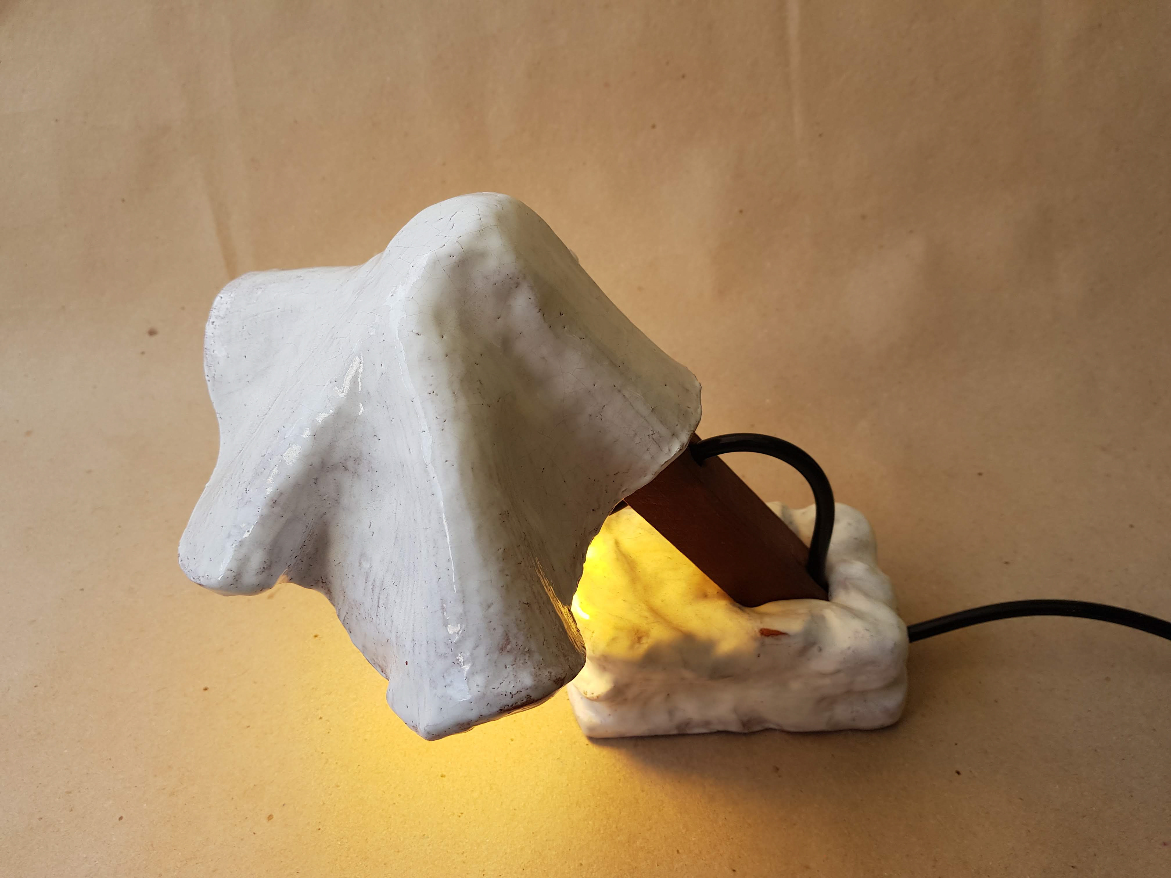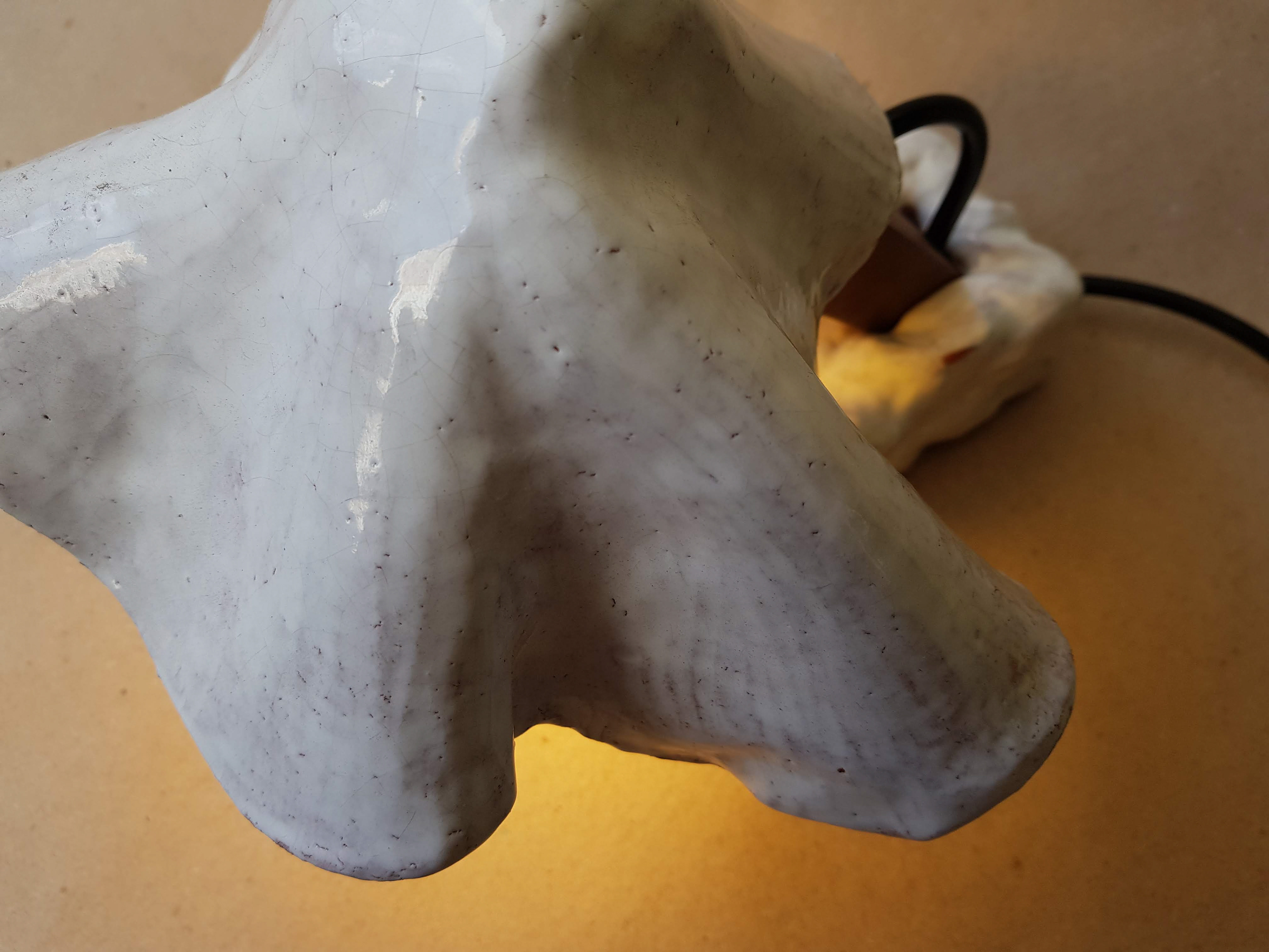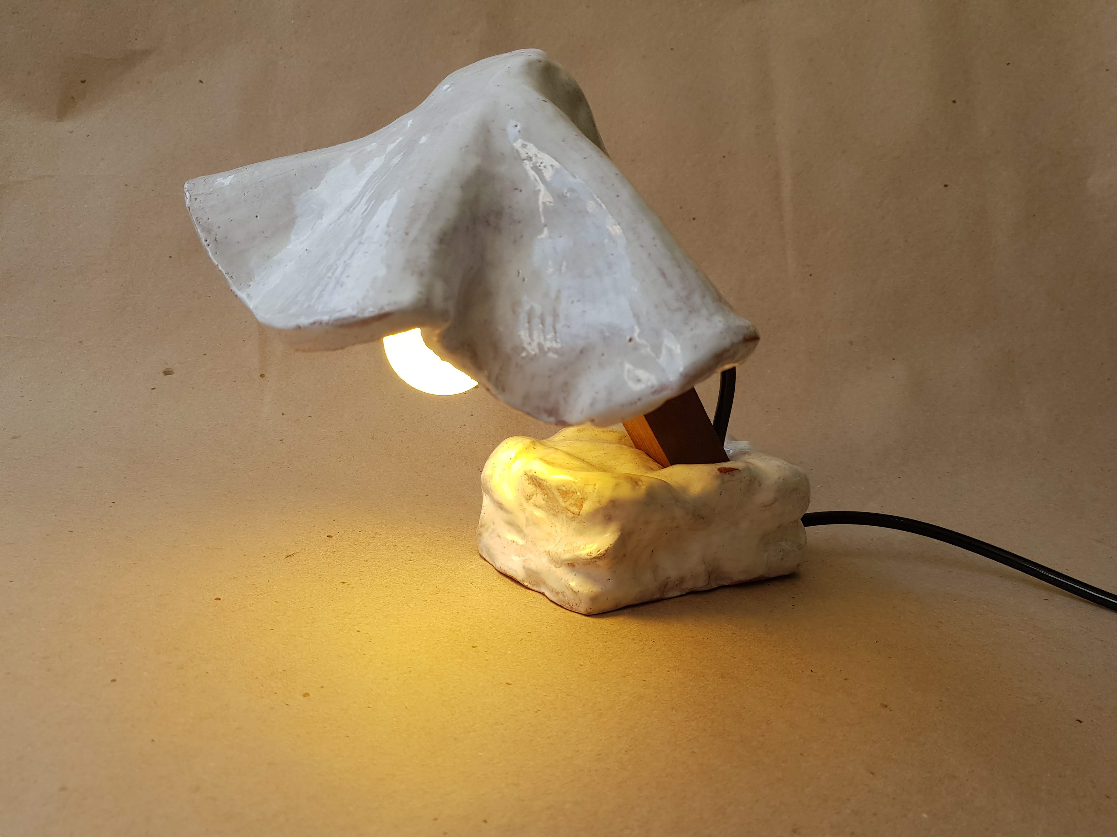 Um dos primeiros projetos que realizei nas aulas de cerâmica, tenta trazer o aspecto de um véu repousado sobre uma luz.